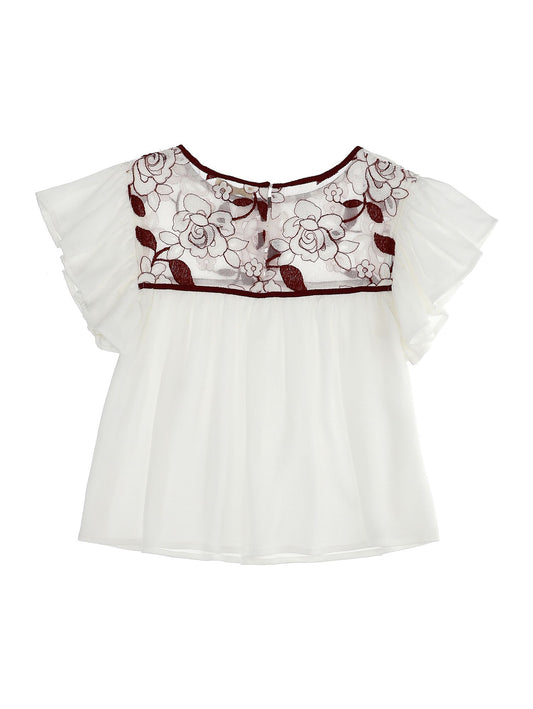 Crepe top with tulle and flowers