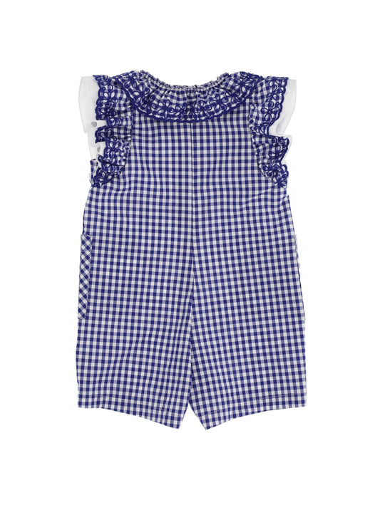 Vichy jumpsuit with embroidery and ruffles