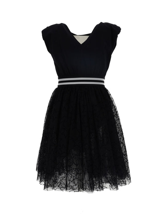 Jersey jumpsuit with star print and tulle skirt