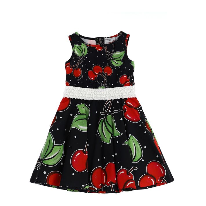 Abito con gonna a ruota, stampa ciliegie