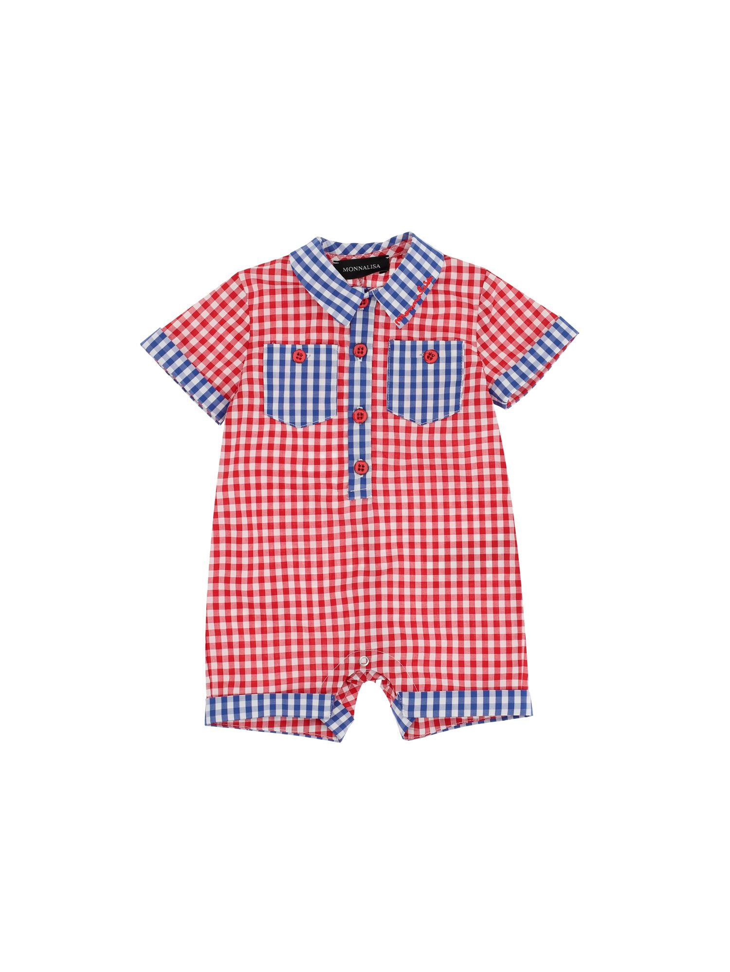 Vichy cotton romper with collar