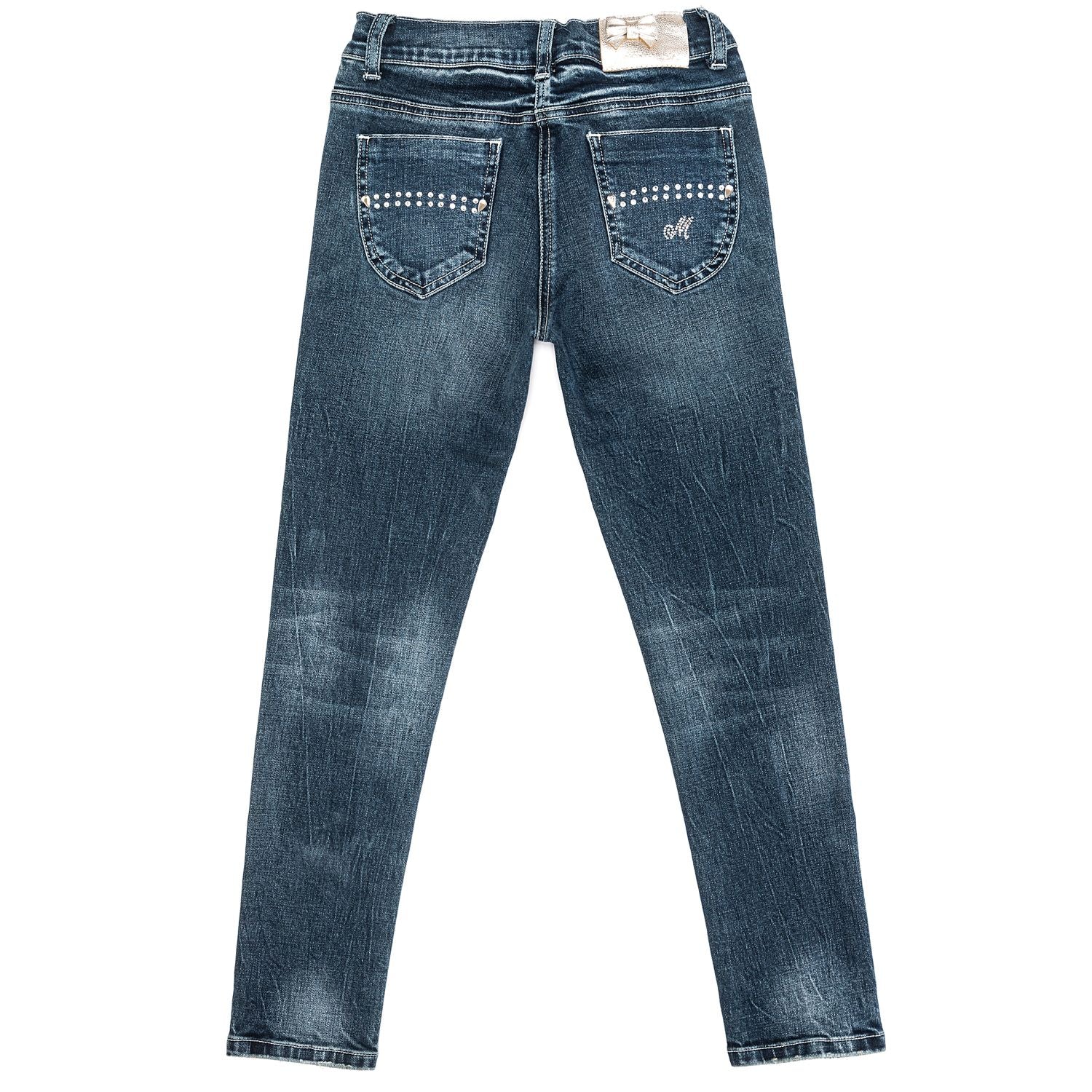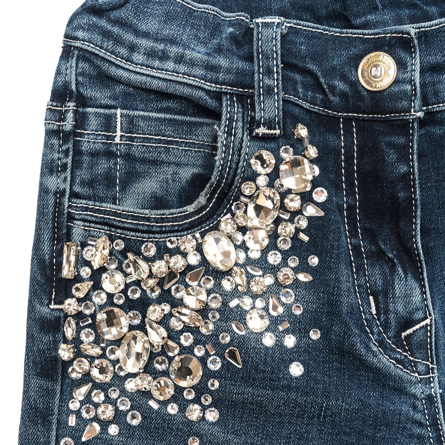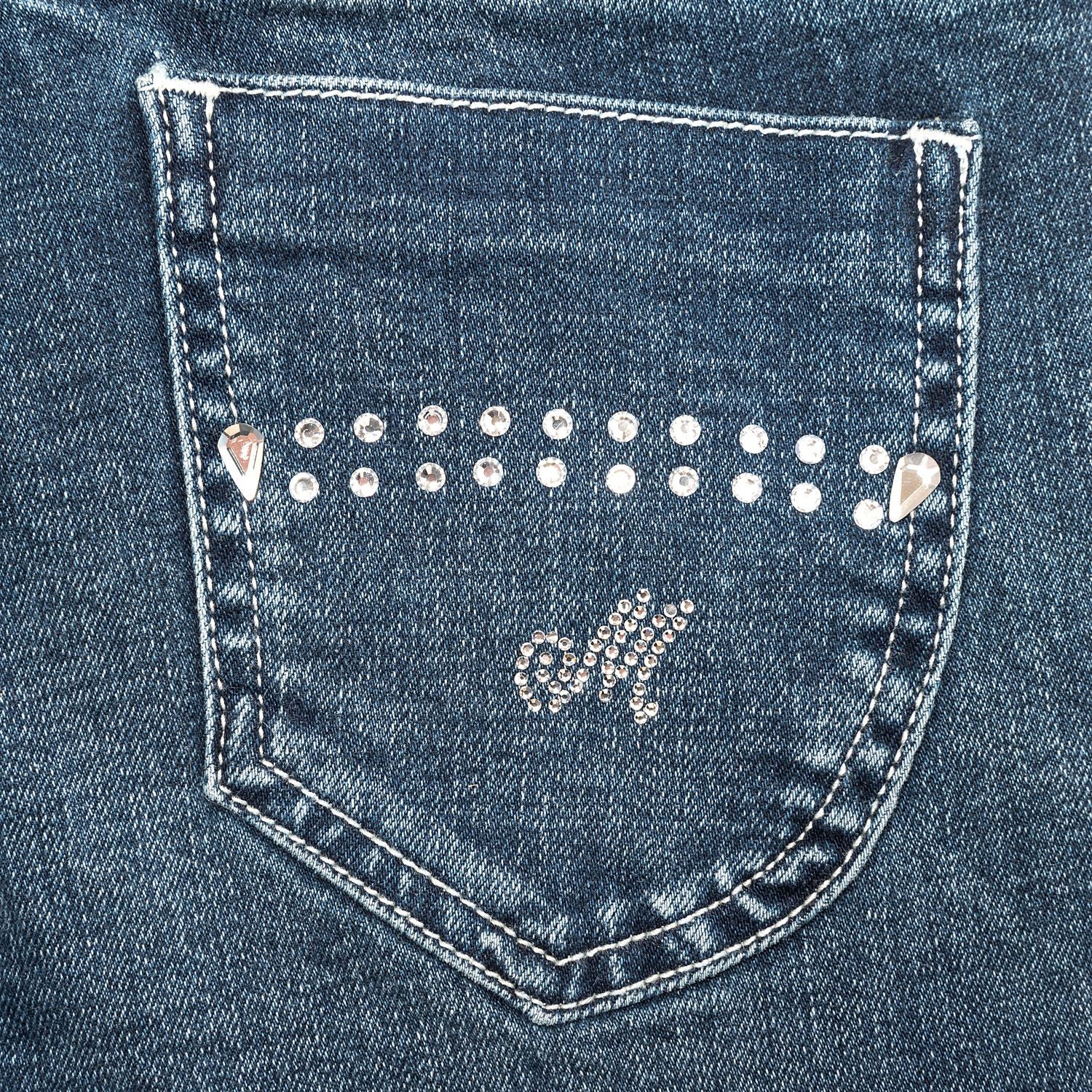 Jean super stretch en version luxe, avec cascades de cristaux sous les poches