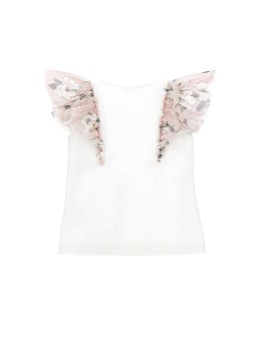 T-shirt jersey con maniche tulle