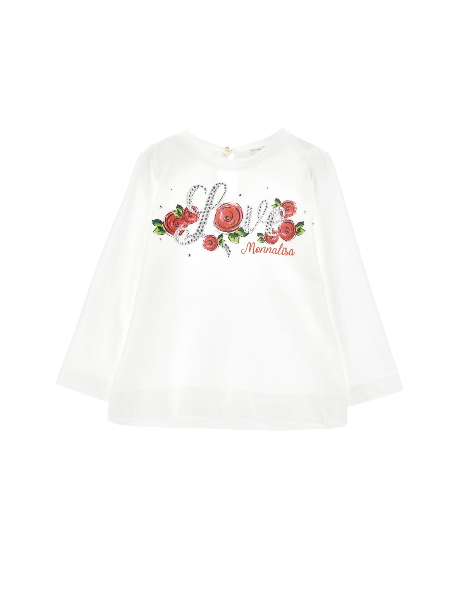 T shirt jersey stampa rosa strass