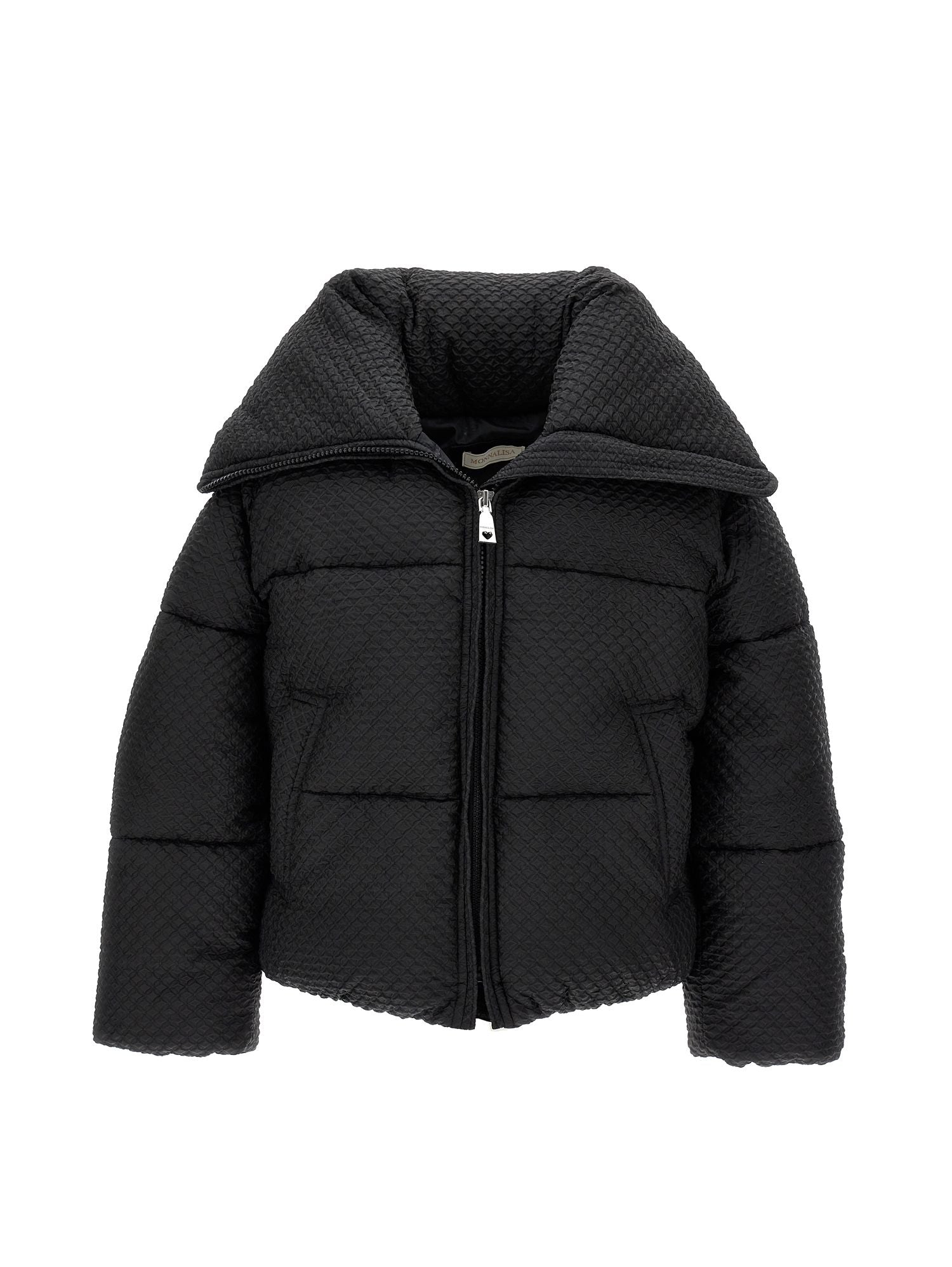 Embossed nylon short down jacket