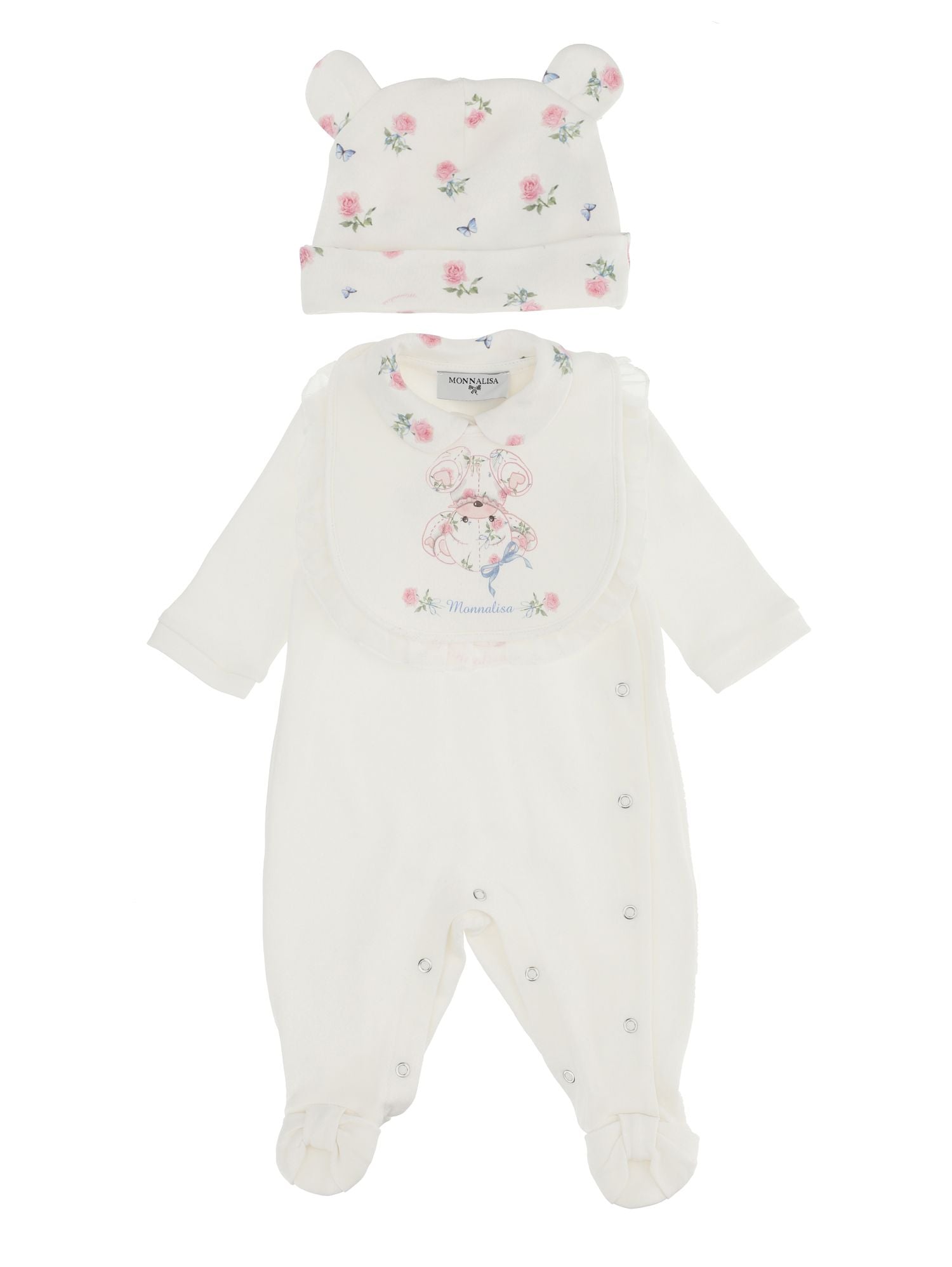 • allover rose and butterfly cap, ears
